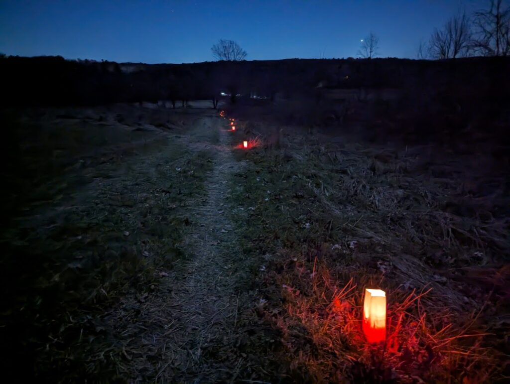 Lanterns light the path towards a campfire, where there will be hot cocoa, snacks, & good company! The distance of the hike is 0.6 mi roundtrip, uphill towards the campfire, downhill back towards the parking.